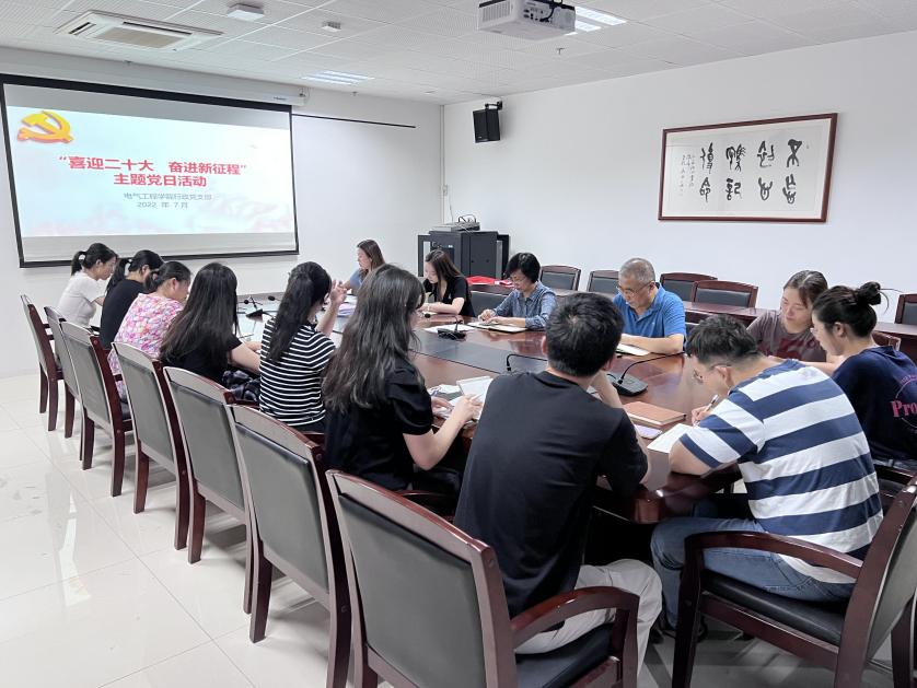 7月12日下午,电气工程学院行政党支部在学院1211会议室召开“喜迎二十大,奋进新征程”主题党日活动。会议由支部书记许红主持,支部全体党员参加。