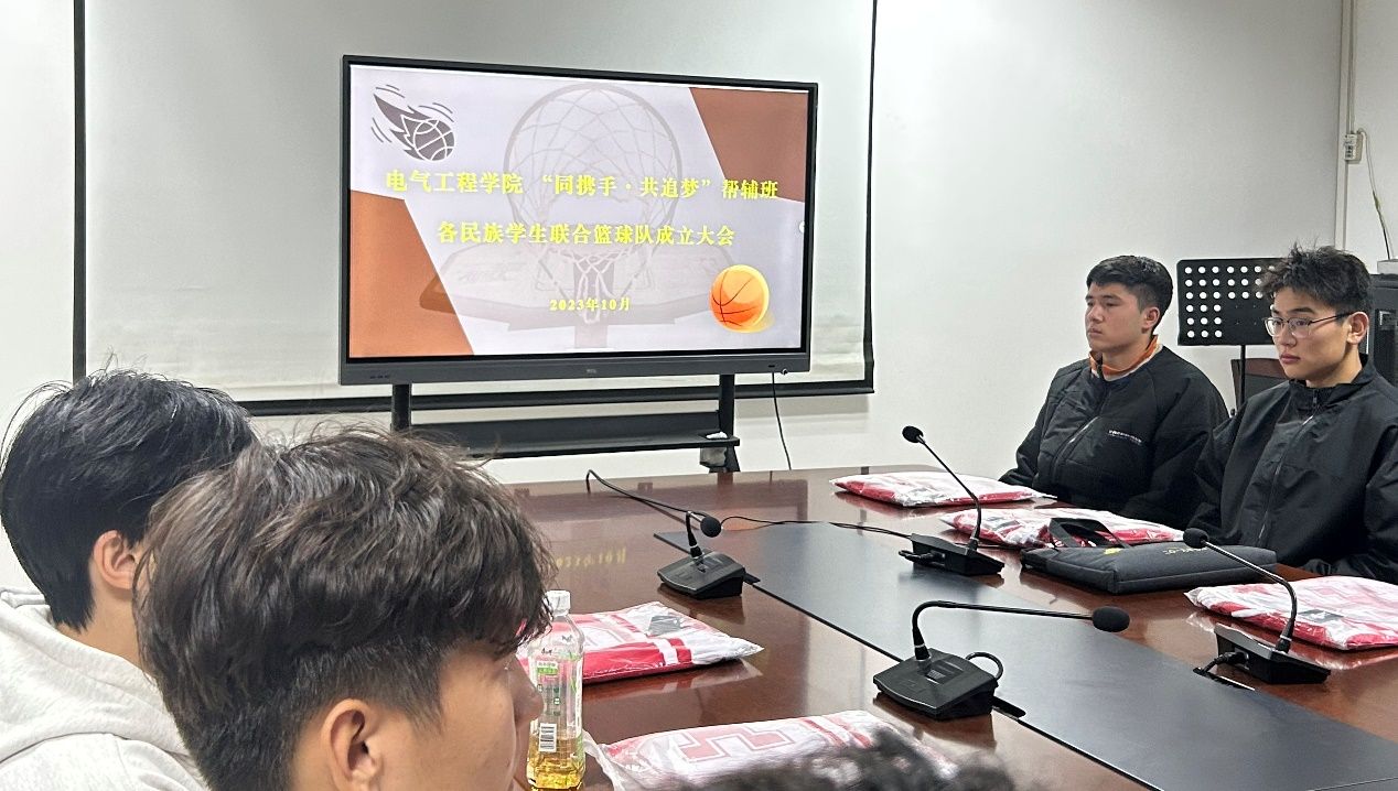 10月24日,为不断丰富各民族学生课余生活和体育爱好,提高各民族学生的身体素质,潜移默化落实铸牢中华民族共同体意识教育。电气工程学院与“同携手·共追梦”学业帮辅班组建的各民族学生联合篮球队成立仪式在曲江校区综合楼1211会议室举行。民族管理中心教师孟庆龙,学生联合篮球队的各民族队员参加成立仪式。仪式由电气工程学院学工办主任、帮辅班管理教师巩晶骐主持。