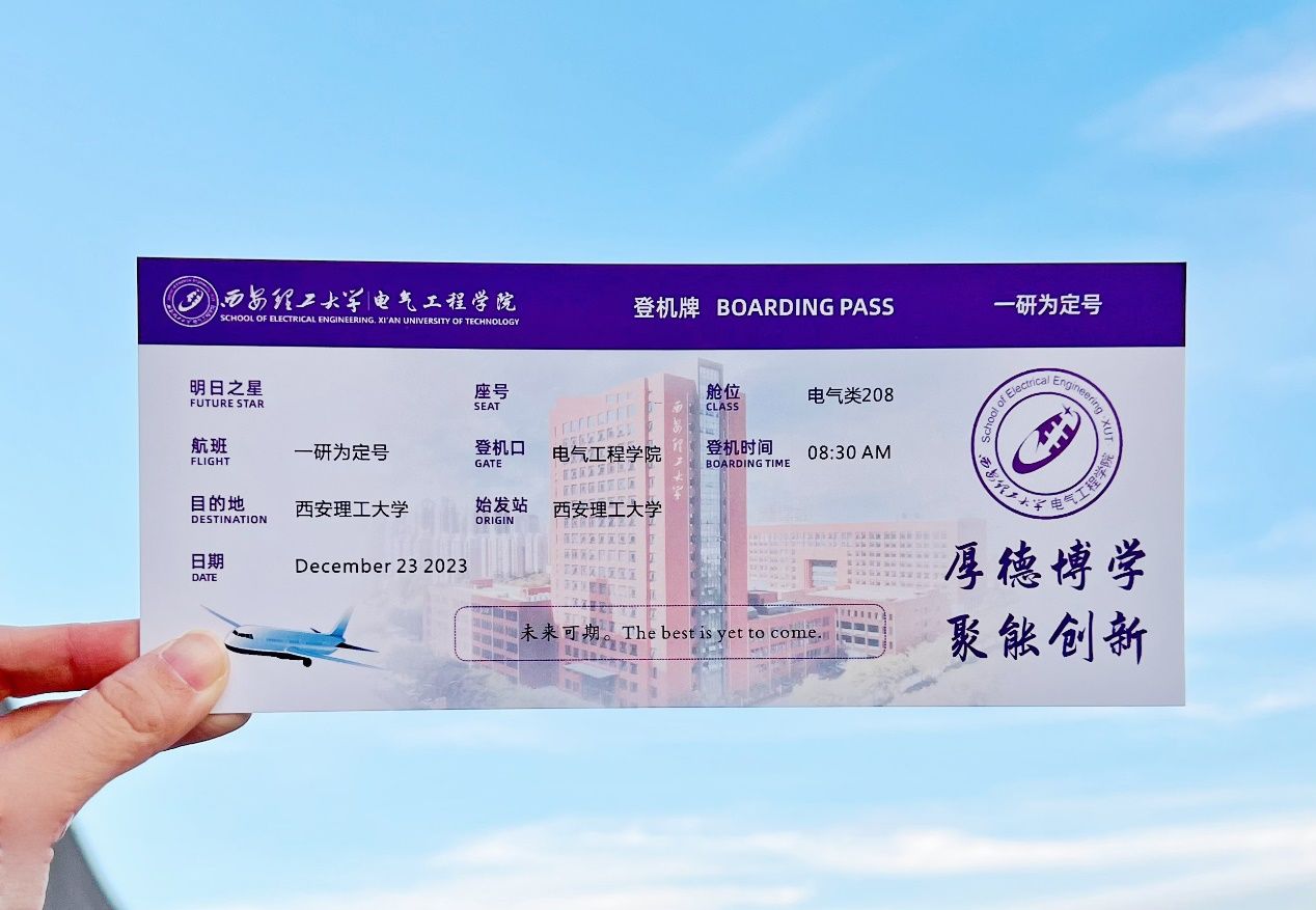 礼包内有充满寓意的礼物:上岸登机牌始发站为西安理工大学,目的地为每一位同学的理想院校,寓意着学院希望所有考研人顺利上岸,抵达梦想的彼岸;暖宝宝可以为大家在寒冷的冬天带来温暖,为大家复习考研保驾护航;蒸汽眼罩寓意着大家在每天的复习过程中不断进步,蒸蒸日上;士力架为大家补充能量,同时也希望大家事事如意;牛奶寓意着大家牛气冲天,在考研的过程中一切顺利;定制手帕纸,正面是学院设计的励志封面,寓意着大家纸定行,背面有每一位考研人的姓名和学号,希望所有人都顺利上岸!