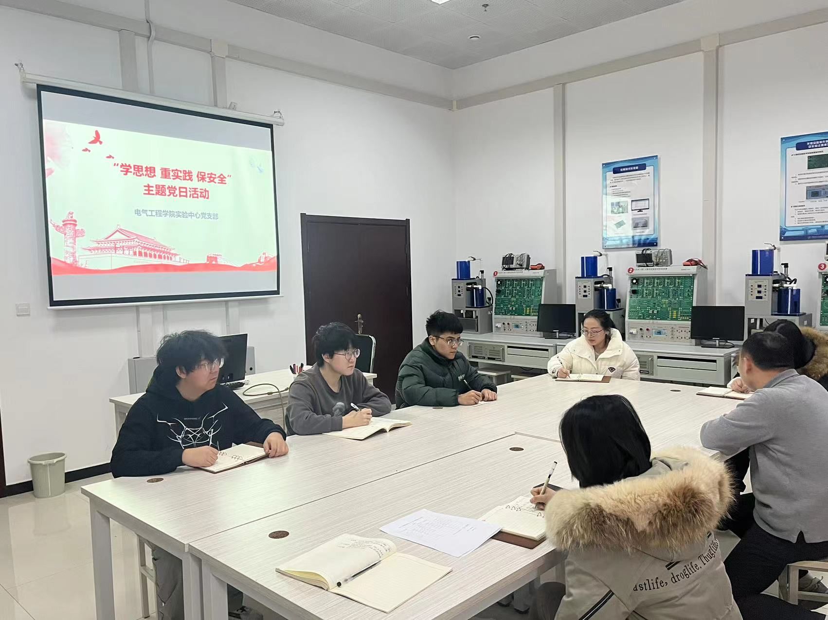 2024年1月12日,电气工程学院实验中心党支部与学生代表在综南楼实验室1704联合开展“学思想 重实践 保安全”的安全教育主题党日活动。实验中心党支部书记姬军鹏,支部党员成凤娇、呼梦颖、路景杰、王建华;学生代表张伟、薛锦田、郭纪江参加了本次活动。