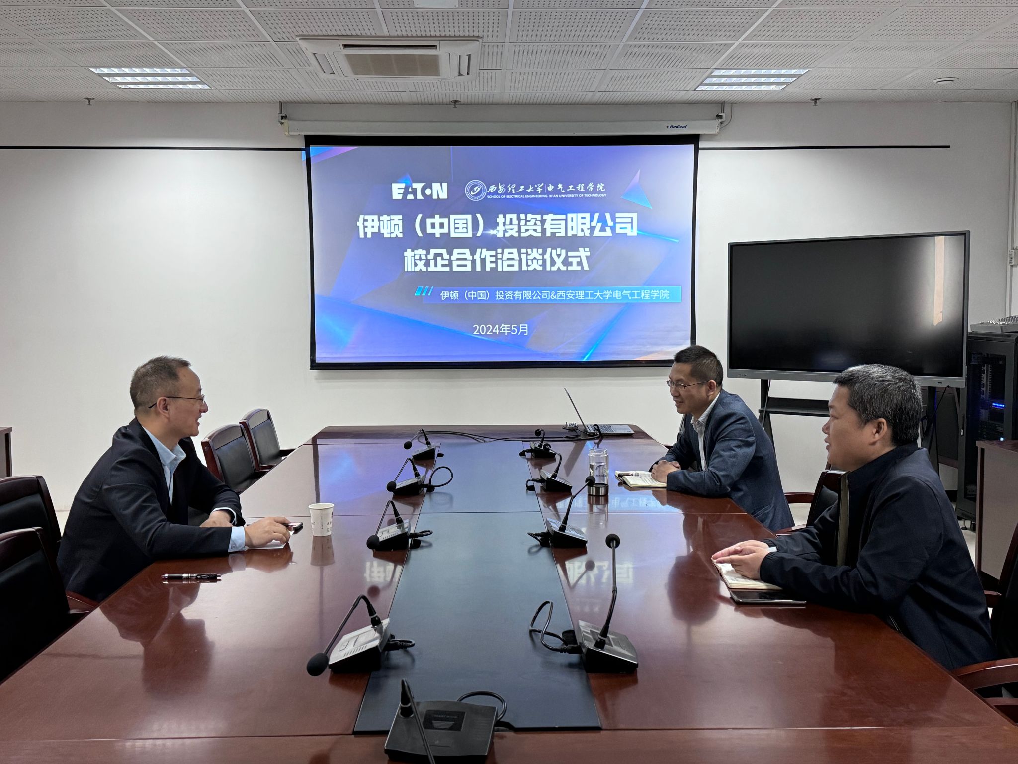 为进一步加强校企合作,推动产学研协同创新,寻求校企合作共赢、共谋发展的良好局面。2024年5月1日上午,我院与伊顿(中国)投资有限公司举行校企合作洽谈仪式,伊顿分布式电能质量事业部西安研发中心经理张峰、副院长宋卫章、党委副书记兼副院长何海生及相关辅导员参加本次仪式。