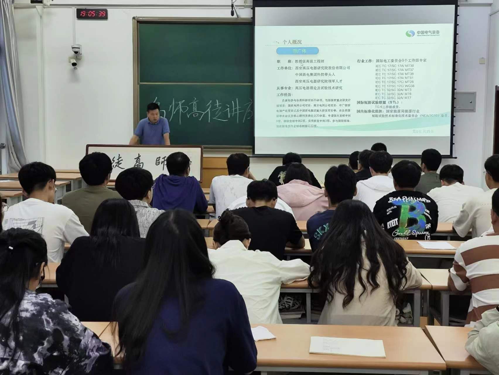 范广伟工程师以《研究生期间科研探讨》为主题,回顾了自己艰苦、充实、精彩的研究生生活,通过自身经历为研究生提供了细致而全面的指导,着重强调研究生要有明确的目标,通过大量阅读文献结合当下研究热点进行选题,最后对科研项目的开展提出了一些宝贵建议。同时,他介绍了西安高压电器研究院股份有限公司的基本情况,尤其介绍了公司在直流输电、特高压输电的领先水平,并表示欢迎大家来访实习,优势互补和资源共享,促进学业科研的提升进步。