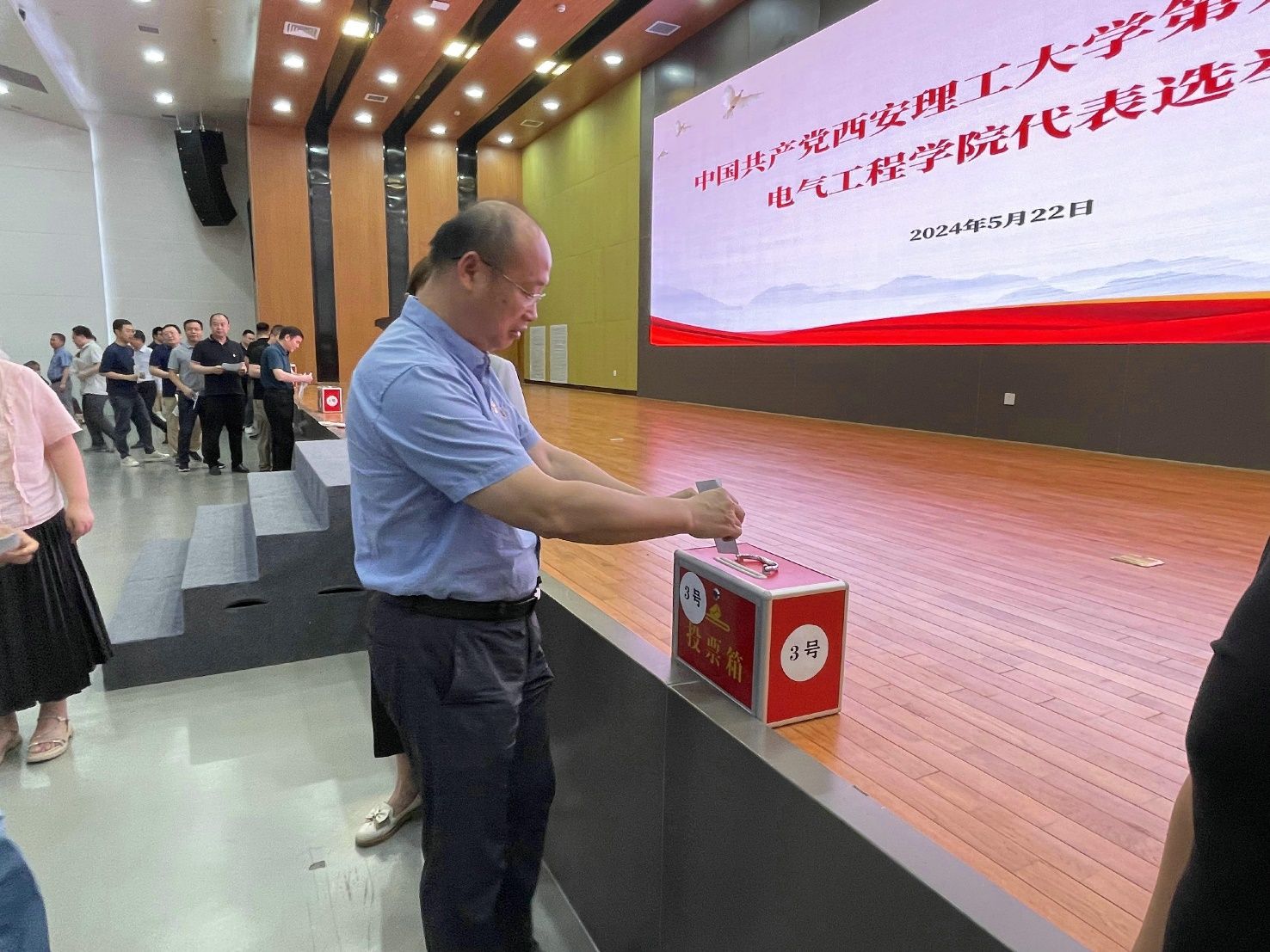 按照校党委《关于中国共产党西安理工大学第九次代表大会代表选举工作的通知》(西安理工党发〔2024〕20 号)要求,电气工程学院党委5月22日在曲江校区图书馆报告厅召开党员大会,选举产生出席中国共产党西安理工大学第九次代表大会的学院党员代表。大会由院党委书记李虹主持。