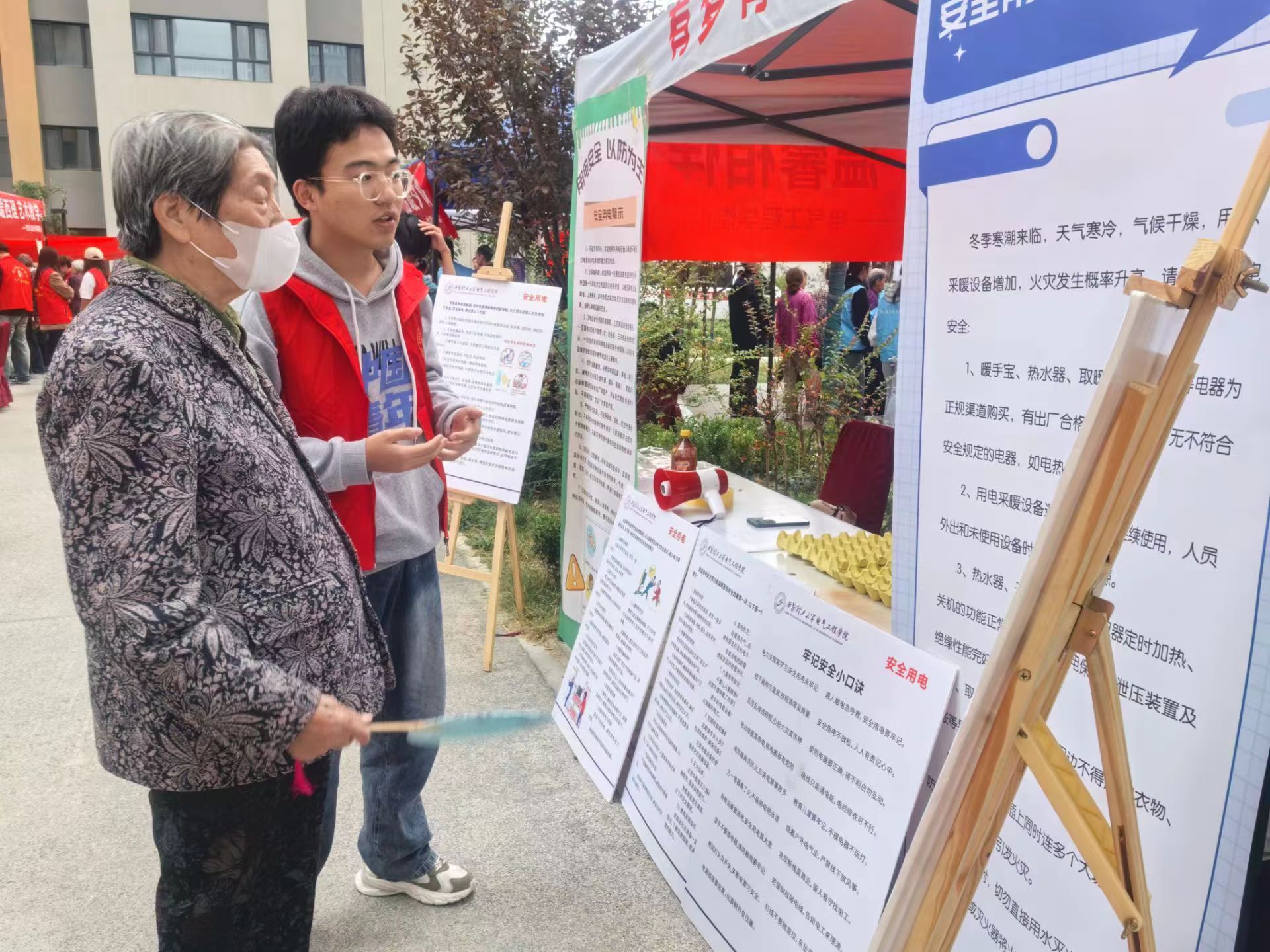 我院的学子化身“电学导师”,他们带着专业的工具箱,穿梭于社区之间,耐心教授每一项安全常识。通过生动有趣的互动体验,不仅增强了老人们的自我保护能力,也让科技知识变得触手可及。更重要的是,这些年轻的身影与长者们共话桑麻,搭建起了一座跨时代的桥梁,让尊重与理解流淌在每个细节之中。
