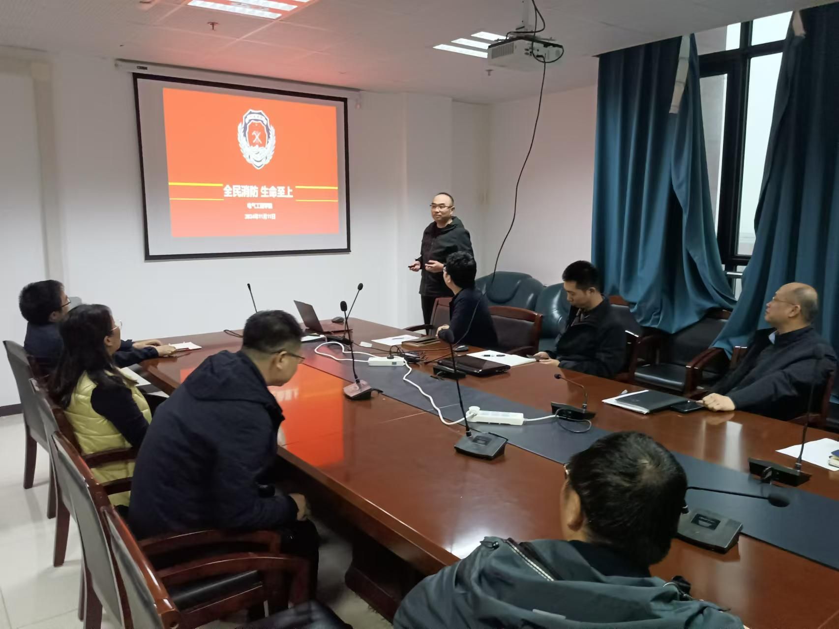 最后,电气学院党委组织员王海生老师在系会上进行了“全民消防,生命至上”主题讲座,并以实物演示的方式现场向全系教职工普及了消防安全知识以及相应的逃生应急技巧,让消防安全知识深入人心,为构建平安校园奠定了坚实基础。