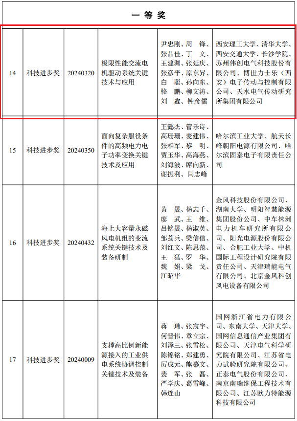 其中,电气工程学院尹忠刚教授主持的《极限性能交流电机驱动系统关键技术与应用》项目荣获2024年度中国电工技术学会科学技术奖一等奖。