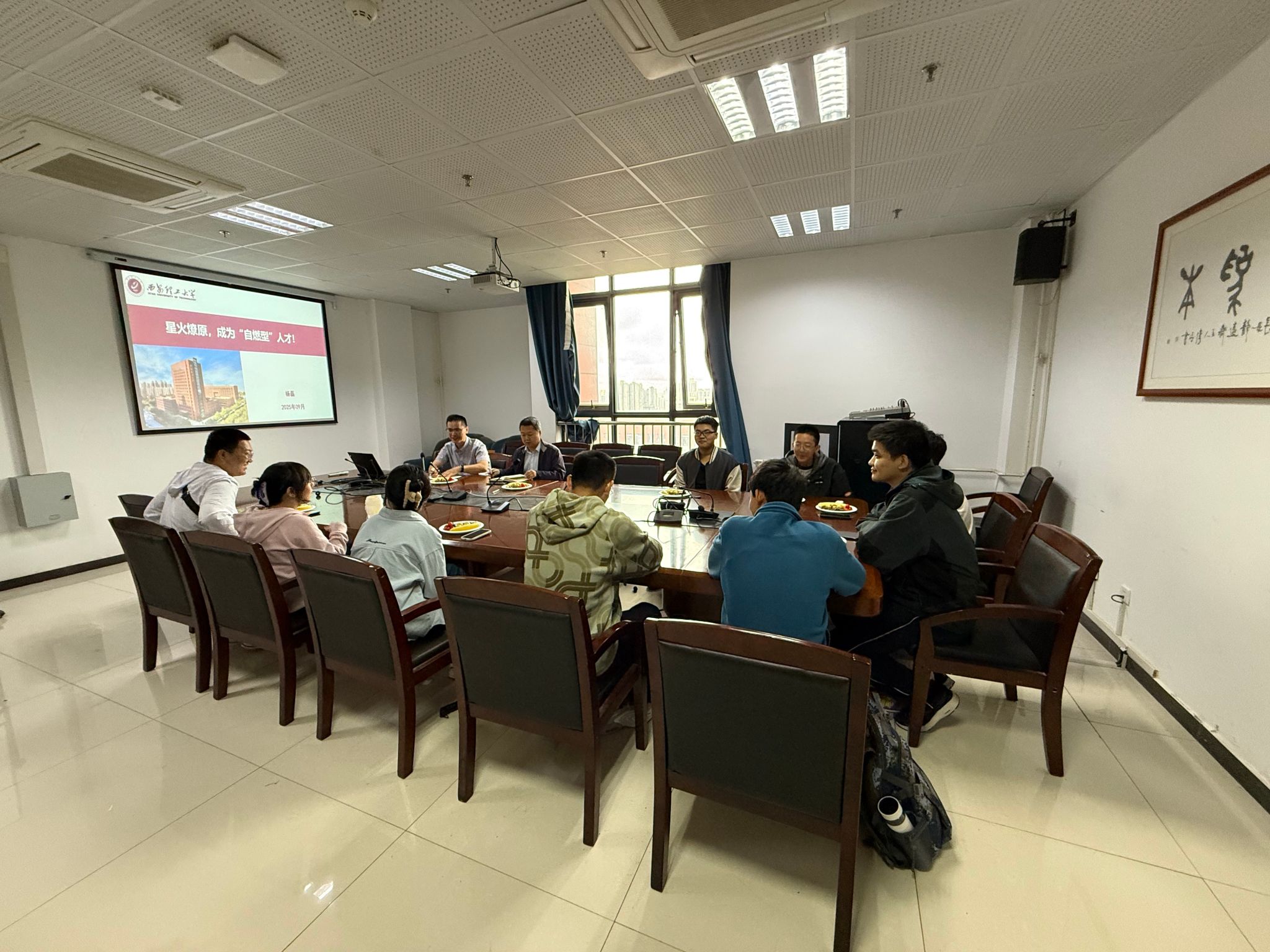 会上10名“拔尖创新班”新生依次作自我介绍,展望大学生活。杨磊为同学们作了题为“星火燎原,成为自然型人才”的主题报告杨老师结合自身经历,从学习、科研和生面分享经验,鼓励大家养成每月读一本书的好习惯,坚持“每天运动一小时,为国奋斗五十年”。杨磊老师鼓励大家“从大处着眼,从小处着手”,从大一开始就进导师课题组开始学术熏陶。激励大家以自身优势为基础勇于攀登、勇于创新,做一名敢于争先的西理工电气人。
