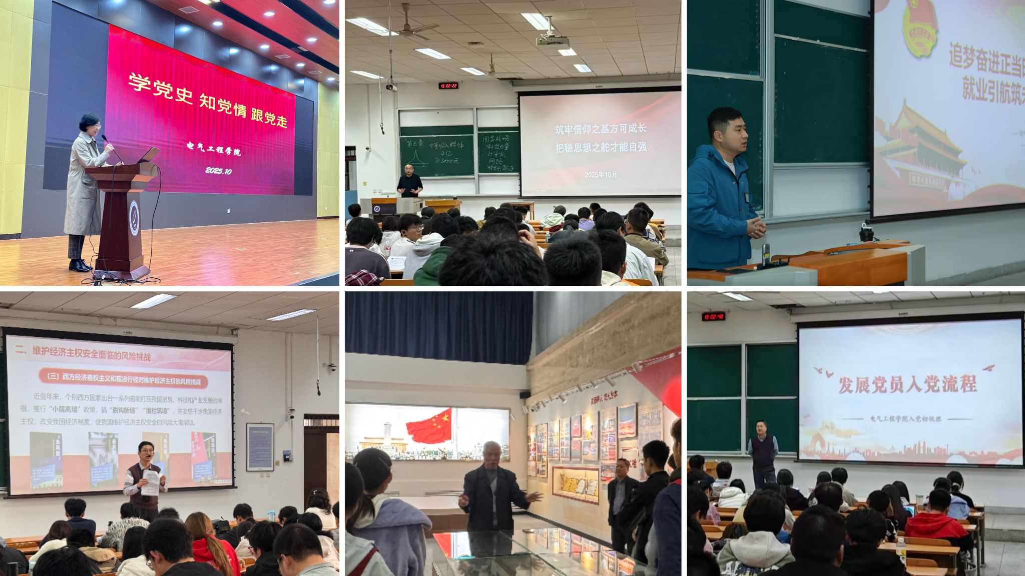 为深入学习贯彻党的二十届四中全会精神,扎实做好入党启蒙和党员教育培养工作,电气工程学院党委于10月至11月精心组织了第六期入党初级班培训。本次培训共开设五场专题党课,主题鲜明、内容翔实,为学员们带来了一场别开生面、意义深远的思想洗礼。学院340名2025级本科生参加培训。